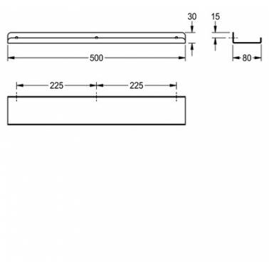 Shelving made of stainless steel satin finish 500mm model HEAVY-DUTY brand Franke. Has a material thickness of 2.0 mm, rounded edges, protective flange in front. Includes stainless steel cross head screws and plugs. Its dimensions are 500x30x80 mm (AxAxP)