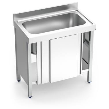 Stainless steel sink with 1000x600x850 mm sliding doors