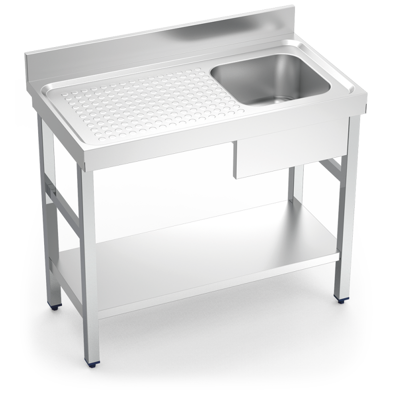 1000x550x850 mm stainless steel sink with support, shelf and left drainer