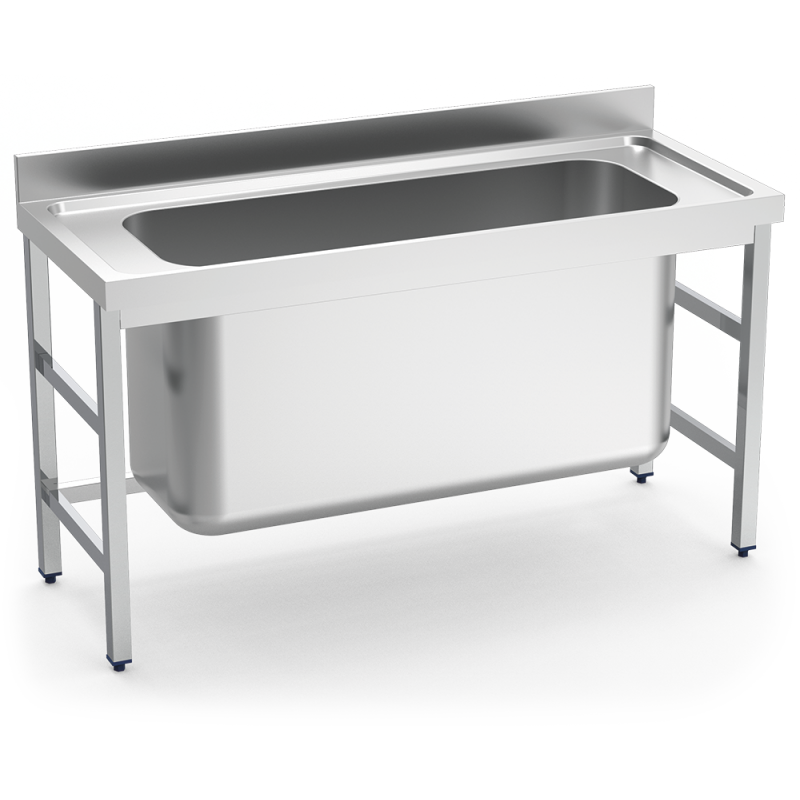 Large capacity sink with one bowl. Completely made of stainless steel with a 1 mm thick sheet and top with a water-saving coating. Its dimensions are 1500x600x850 mm and the dimensions of the bucket are 1060x420x600 mm
