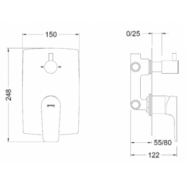 Monomando empotrado con inversor cerámico 3 vías acabado negro mate alta calidad. Para instalar en pared. Grifo con cartucho cerámico D40. Se suministra con placa deslizante fabricada en latón. Dotado de distribuidor cerámico con tres salidas de agua, ducha/bañera/rociador.