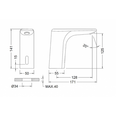 Grifo de lavabo con sensor para instalar sobre encimera, fabricado según UNE-EN 15091 con certificado CE, en latón CW617N cromado según EN 248. Dotado de un sistema de detección por infrarrojos, con programación de seguridad de uso, con cierre por exceso de tiempo.