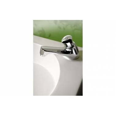 Timed single water basin tap for installation on shelf and opening by button PRESTO