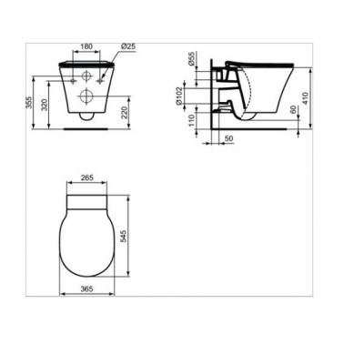 Wall-hung toilet pack with cushioned cover in gloss white finish with Aquablade technology, Connect Air Ideal Standard . The Aquablade system makes the water flow from the top of the toilet by rinsing the 95% from the surface, offering superior discharge performance at all times with less noise during the discharge. It integrates a channel that creates a cascade of pressurized water, which flows around the toilet creating two strong jets at the front. These jets of water come together to form a powerful column of water that effortlessly pushes solid matter and optimizes the flushing and cleaning function of the toilet. It is proven that it is a 25% quieter than other equivalent models, cleaner since it ensures that the surface is well rinsed and smarter for its effectiveness. The Connect Air sanitaryware collection has a modern style that gives a fresh air to the bathroom, a comprehensive solution that provides elegance, comfort and functionality.