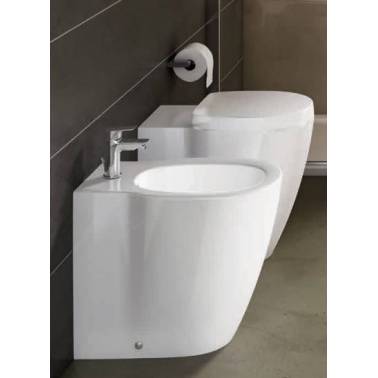 Wall-mounted high tank toilet with a gloss white finish, Connect Freedom Ideal Standard . The Connect Freedom collection of toilets is specially designed to meet the needs of people with reduced mobility. Raised toilets with more ergonomics of the bowl provide greater accessibility and are better adapted to needs.