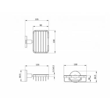 Genwec Creta Series wall soap dish. Bathroom soap dish made of AISI 304 stainless steel with a shiny finish. Corrosion resistant. Wall installation. Supplied with fixing elements. Its dimensions are 64.5mm high, 130mm wide and 135mm deep.