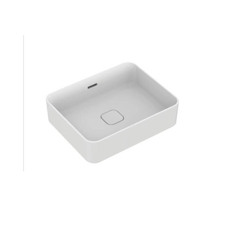Rectangular countertop washbasin with 50x40cm overflow, Strada II Ideal Standard . Stoneware basin without tap hole with fixing kit included and ceramic drain trim. The Strada II range of washbasins from the Ideal Standard manufacturer has perfect lines and is ideal for optimizing the space in the bathroom without having to give up design.