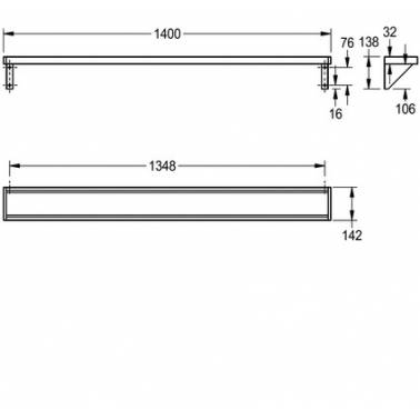 Wall shelf made of 1400mm satin finish chrome nickel steel model SATURN brand Franke. It has a material thickness of 1.0 mm, welded brackets with shelf, lateral closures with screwed gray plastic pieces. From 1800 mm in length, the models are supplied with an additional bracket.