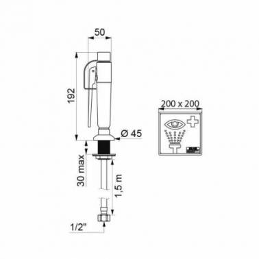 Hand shower emergency eyewash table 1 outlet and Delabie brand identification plate
