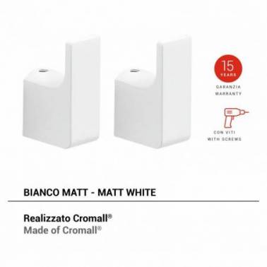 The set of 2 Pirenei hangers in a matte white finish is a practical and elegant solution for hanging your clothes in the bathroom or any other room. Made from a combination of brass and cromall, these hangers offer strength and durability, ensuring reliable support for your garments.