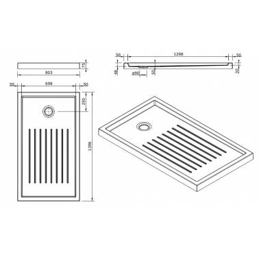 140x80 mm flat shower tray with 7.5 cm wing, Piano model, Unisan brand
