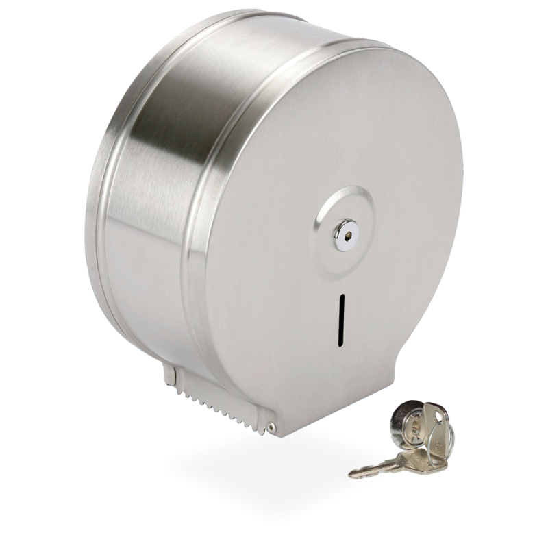 Industrial roll holder made of 265x120x260 mm stainless steel Designed for the most common types of coil on the market. It has a safety closure that reduces the misuse of the product and offers simplicity in replacing the paper. Roll type: 250 / 300m roll