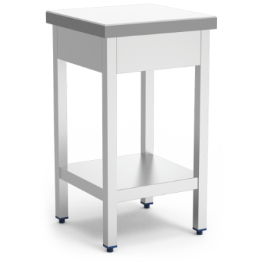 450x450x900 mm ballasted fiber chopping block in white. Polyethylene quality P-500, 50 mm thick. Its great weight will greatly avoid the sounds and vibrations of the one who is hitting, favoring its stability. It facilitates the cleaning of the fiber and the support since it can be disassembled without having to remove a single screw. Manufactured with a frame built in stainless steel tube, soundproof stainless steel sheet shelving and no wood glued inside. Adjustable feet for greater stability and comfort on any type of ground