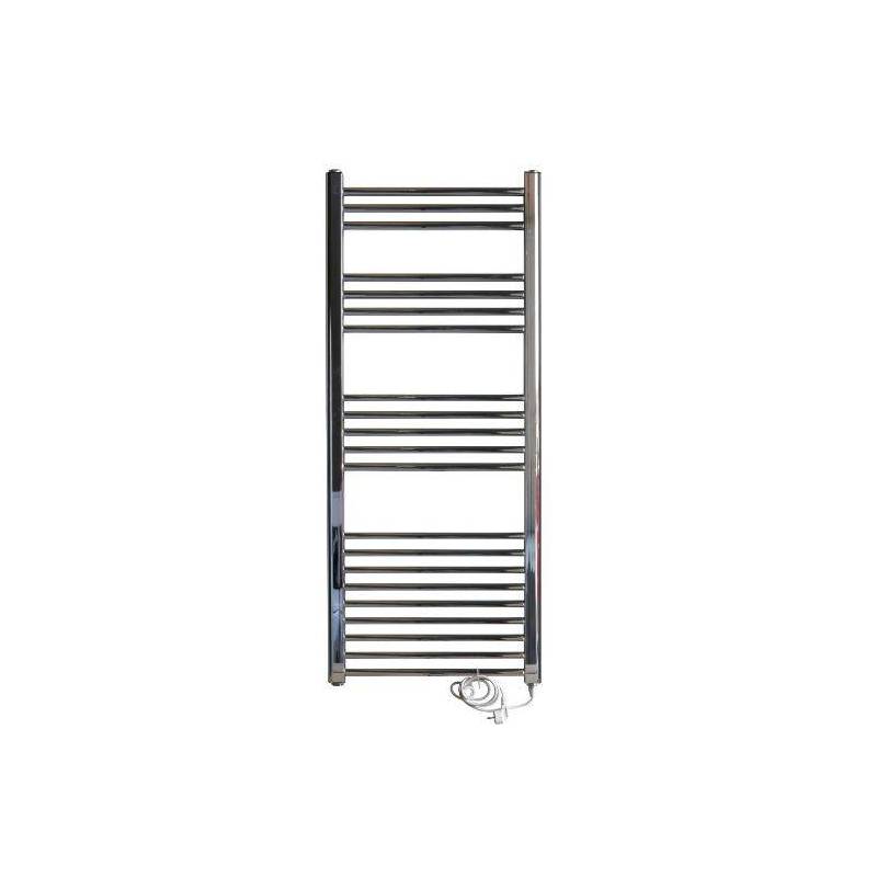 El toallero eléctrico Thermo de 120 cm en cromo combina alta potencia de 375W y 21 barras tubulares para una eficiencia óptima y estilo moderno.