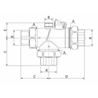 Válvula mezcladora termostática para sistemas centralizados Cuerpo en latón UNE-EN 12165 . Partes internas UNE-EN 12164. Muelle de acero inoxidable. Temperatura maxima entrada agua caliente 90ºC. Campo de regulación 30÷65ºC.