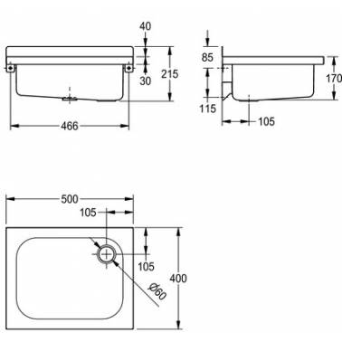 Sink for wall support made of satin finish chrome nickel steel model SIRIUS brand Franke. Industrial sink with a material thickness of 1.0 mm, welded bowl without joints. The dimensions of the bucket are 420x400x170 mm, rounded edges, 1 1/2 "drain valve, drain at the rear on the right, 40 mm rear breastplate. Includes stainless steel screws and plugs. Its dimensions are 500x215x400 mm (WxHxD)