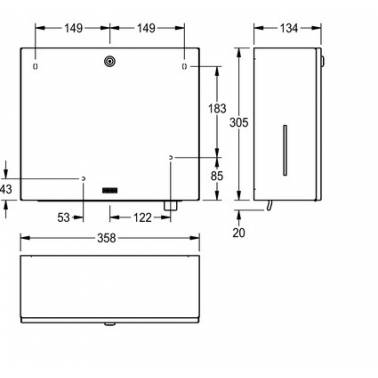 Set portasciugamani e portasapone a parete in acciaio inox satinato modello RODAN marca Franke. Ha finestre di ispezione laterali per il controllo dei consumi, serratura a cilindro con chiave Franke di serie, il suo spessore è di 0,8 mm. Il distributore di asciugamani di carta contiene 300-400 asciugamani a seconda della piega. Il distributore di sapone è adatto per saponi liquidi e lozioni, ha una capacità di 0,8 litri. Include viti e tasselli in acciaio inossidabile. Le sue dimensioni sono 358x325x134 mm (LxAxP).