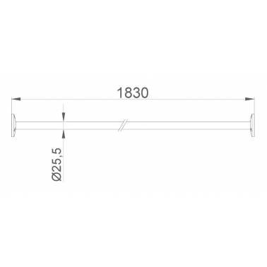 Asta per tenda doccia in acciaio inossidabile da 1830 mm Nofer. Il tubo è in acciaio inossidabile. Le viti di fissaggio al muro sono a vista. Le sue dimensioni sono 1830 mm di lunghezza x Ø25'5 mm di diametro della barra.