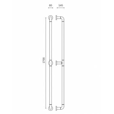 Manico diritto con tre punti di ancoraggio da 1700 mm in alluminio rivestito con poliammide Nofer bianca. La barra ha un diametro di Ø36mm. Si installa a parete tramite tre punti di ancoraggio.