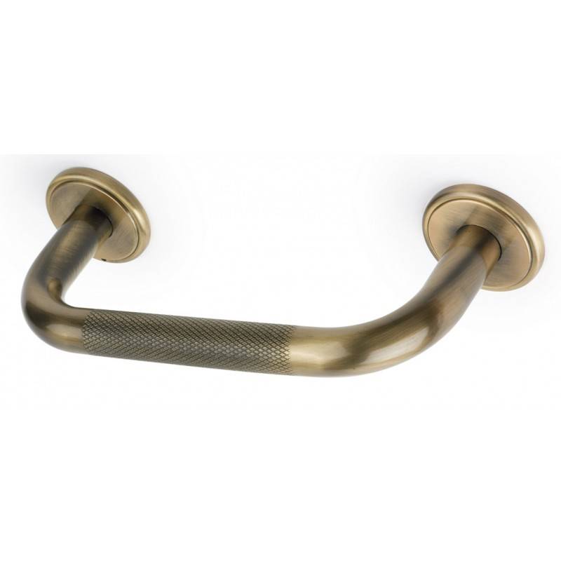 Maniglia con battistrada tipo “C” antiscivolo in alluminio finitura oro antico. Zigrinatura antiscivolo. Lunghezza: 277 cm. Diametro: 22 mm.