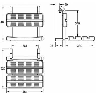 Seduta sospesa a barra di sostegno realizzata in acciaio al cromo-nichel satinato, marca Franke. Il materiale ha uno spessore di 1,2 mm con un diametro del tubo di 32 mm. Presenta due supporti sedile avvitati e uno schienale avvitato in polietilene bianco. Ha un ammortizzatore in polietilene. Include viti di sicurezza in acciaio inossidabile. Le sue dimensioni sono 484x460x520mm (AxAxP). Il materiale è stato testato e certificato. La barra di sostegno non è inclusa, la barra o la maniglia deve essere lunga 520 mm.