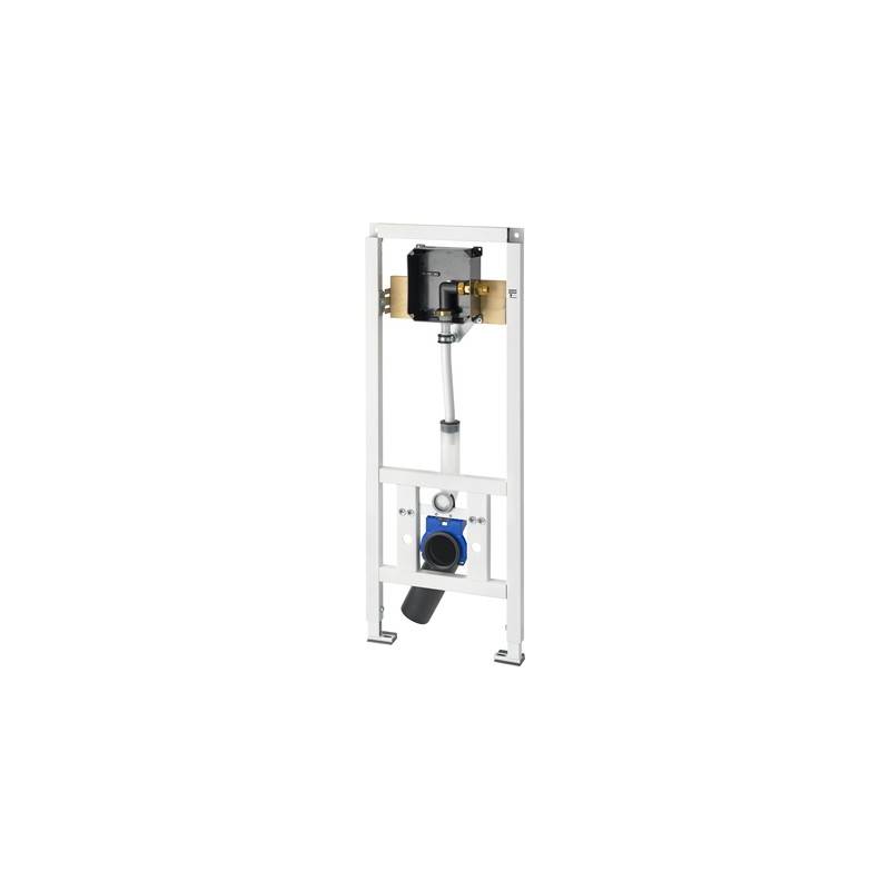 Telaio per wc sospesi per disabili con predisposizione per incasso a filo AQUAFIX marca Franke. Cornice con kit rubinetteria base premontato per rubinetto di scarico AQUALINE / PROTRONIC / AQUAMAT. Struttura autoportante con telaio in acciaio, verniciata a polvere, omologata TÜV, per montaggio singolo per verniciatura a secco, staffa di fissaggio regolabile in 4 posizioni per gomito attacco WC DN 90 / DN 100, completa di guarnizione di ingresso e piletta, aste di fissaggio per wc, protezione del lavoro. Include materiale di fissaggio.