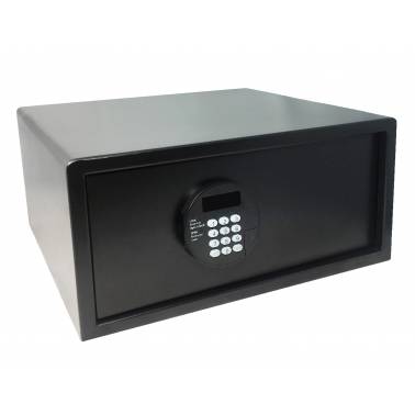 Cassaforte modello Fortress 15 ”con serratura a codice JVD. Capacità per un laptop da 15 ", disponibile anche per 14". È bloccato da un codice di 4-6 cifre. Dopo quattro tentativi falliti si blocca per 15 minuti. Ha un controllo di sblocco e di gestione per la gestione dell'hotel.
