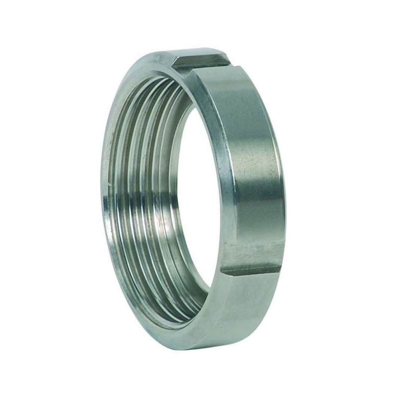 Tuerca roscada para racor soldar. Normativa aplicable: DIN 11851. Material: acero inoxidable 304. Terminación superficial: pulido.