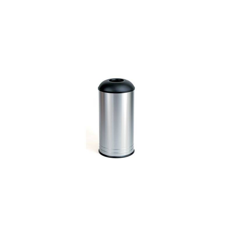 Pattumiera circolare con una capacità di 68 litri in acciaio inox satinato Bobrick . Ha un coperchio a forma di cupola in acciaio nero, presenta un'apertura con un diametro di 150mm per un uso più igienico. Il rivestimento è sfoderabile, resistente alle impronte e dotato di fori per facilitarne la rimozione. Le sue dimensioni sono di 380 mm di diametro e 785 mm di altezza.
