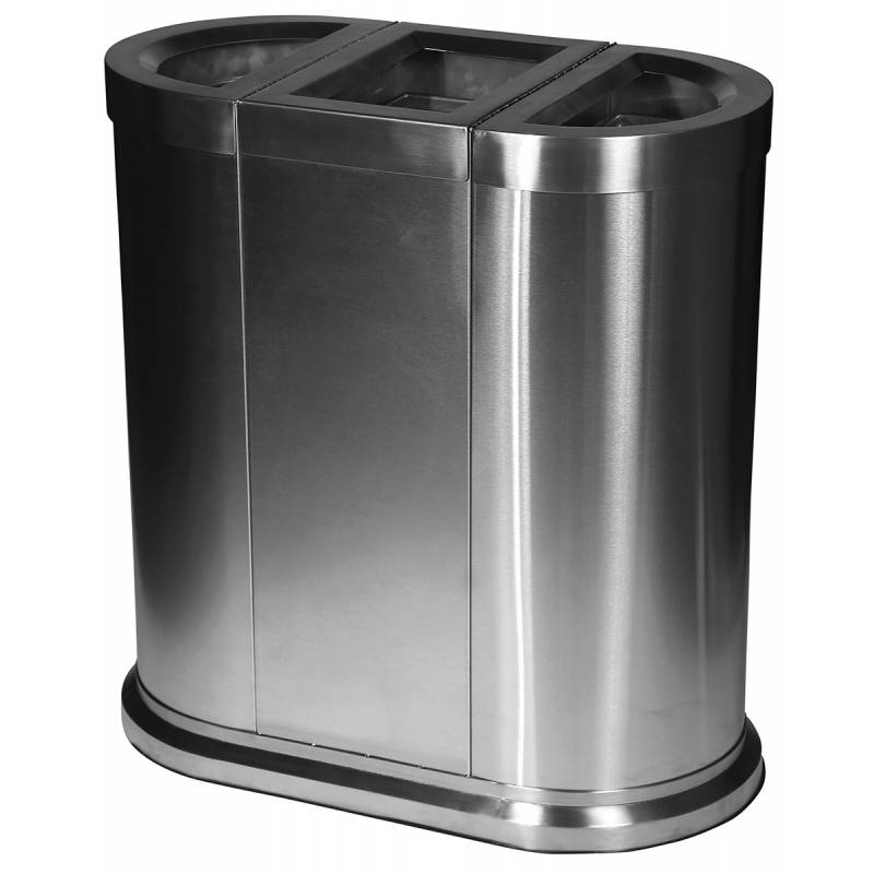 Stazione di riciclaggio a separazione selettiva in acciaio inossidabile da 150 litri. Design pulito per una soluzione di separazione ad alta capacità. Facile da svuotare grazie ai 3 contenitori interni in acciaio zincato o ai portaborse. Adesivi inclusi per identificare l'uso dei contenitori. Materiale: acciaio inossidabile 201. Capacità: 150L. 2 scomparti da 40 L e 1 scomparto da 70 L. Dimensioni: L822xH850xP452mm.