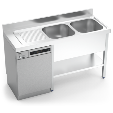 Lavello per vetro e lavastoviglie a due vasche e gocciolatoio sinistro 1600x700 mm Fricosmos