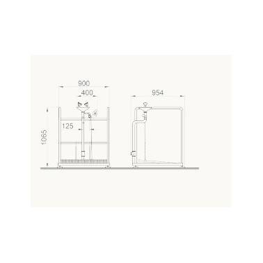 Piattaforma con lavaocchi laterale a leva manuale realizzata in acciaio zincato verniciato a polveri epossidiche di colore verde. Paletta in polipropilene. Collegamenti in ottone.