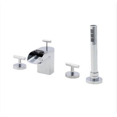 Rubinetto vasca / doccia per installazione su mensola in ottone cromato, modello Loveme Galindo. La collezione di rubinetteria Loveme è disegnata dal prestigioso designer Maurizio Duranti e premiata con il GOOD DESIGN AWARD 2005. Hanno un design moderno e romantico che donerà al bagno un'atmosfera confortevole e unica. Il rubinetto non dispone di aeratore e fa scorrere liberamente l'acqua a cascata. I materiali che compongono le parti del rubinetto possono sopportare una temperatura massima di 70ºC. La pressione minima di utilizzo è 0,5 bar. Supporti in ceramica. La portata d'acqua è di 22,6 l / minuto a 3 bar e massima apertura tramite comandi separati. Ingresso maschio da mezzo pollice. Fornito con accessori doccia.