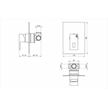 Caratteristiche: i materiali che compongono le parti dei rubinetti possono sopportare una temperatura massima di 70ºC. Rubinetto in ottone con finitura cromata. Pressione minima di utilizzo: 0,5 bar. Maniglia azionata. Cartuccia miscelatrice sigillata con dischi ceramici diametro 35 mm. Portata di 20 lt / minuto a 3 bar e massima apertura. Ingressi e uscite 1/2 femmina. Piastra di rivestimento regolabile. Disponibile: Senza accessori doccia. Meccanismo vasca doccia monocomando incorporato. Finitura cromata. Cartuccia con dischi ceramici. Ingresso 1/2 femmina.