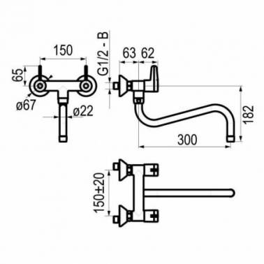 Grifo fregadero industrial bimando mural bajo marca Presto. Grifo mezclador bimando industrial bajo para fregadero de instalación mural para uso industrial.