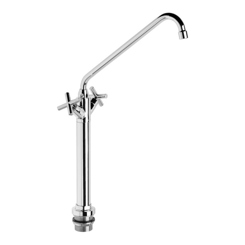 Grifo mezclador de llenado profesional con caño giratorio para instalar sobre la encimera. Grifo, soportes y barra en latón CW617N cromados según EN 248. Aireador plástico antical. Barra con altura regulable. Dotado de montura ¼ vuelta y conexiones flexibles. Incluye todos los elementos de fijación.