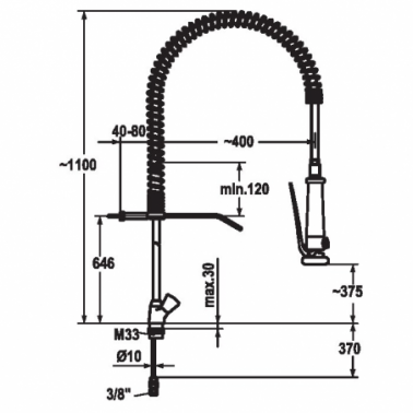 El Mezclador bimando para cocina profesional GASTRO de KWC Home, con una altura de 1100 mm y una salida de agua de 375 mm, está diseñado para ofrecer máxima funcionalidad en entornos de cocina profesional. Este grifo de tipo Zweigriffmischer cuenta con una construcción robusta, incluyendo una tragfeder de acero inoxidable que proporciona una durabilidad excepcional. Sus manijas de metal KWC CORONA son desmontables, facilitando su limpieza y mantenimiento. Además, está equipado con la tecnología TouchProtect, que evita quemaduras gracias a su diseño de doble capa. Este grifo es a prueba de retrocesos y presenta una grifería de ducha con una boquilla de ducha que incluye un sistema de cierre retardado para mayor comodidad. La unidad de mantenimiento de válvula permite la limpieza eficiente del grifo. También cuenta con tecnología SprayClean, que facilita la eliminación activa de cal y la limpieza rápida de la rejilla, junto con SprayLock para fijar el chorro de la ducha y PowerClean para un modo de chorro potente. El grifo proporciona un espacio de trabajo óptimo y su diseño incluye un asiento de válvula de acero inoxidable con conexiones de tubo de cobre de diámetro 10 mm, además de un sistema de fijación con rosca M33 x 1.5. Su orificio de montaje es de 35 mm y tiene un flujo de salida de 15 l/min (3 bar), asegurando un rendimiento eficiente en la cocina. Hecho de latón y clasificado en el grupo de ruido de grifería I, este mezlcador es la elección ideal para profesionales que requieren calidad y funcionalidad en su equipo de cocina.
