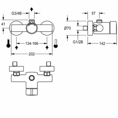 El grifo mural con cierre automático F3S-Mix DN 15 de Franke KWC es la solución ideal para instalaciones de ducha en entornos públicos o semipúblicos que requieren fiabilidad, higiene y eficiencia en el consumo de agua. Este mezclador monomando de instalación mural en superficie incorpora un cartucho hidráulico con cierre automático sin émbolo, que permite ajustar el tiempo de apertura del agua de forma continua. Su diseño robusto incluye un tope de temperatura ajustable para evitar riesgos por agua caliente, ideal para instalaciones en gimnasios, centros educativos o sanitarios. Con salida orientada hacia arriba G 3/4 B, es apto para la conexión de arcos de salida o tubos de ducha. El cuerpo está fabricado en latón cromado de alto brillo, con conexiones ajustables que incluyen válvulas de retención, filtros y elegantes rosetas atornillables. Ofrece seguridad, control y eficiencia en un diseño duradero y fácil de mantener.