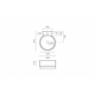 Lavabo sospeso con portasciugamani. Senza troppopieno. Misure: 280x335x110 mm.
