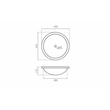 Lavabo da incasso senza troppopieno. Misure: 435x435x115 mm.