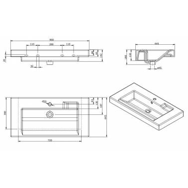 Lavabo semincasso bianco, modello Linha 90, marchio Unisan . Misure 900x450 mm