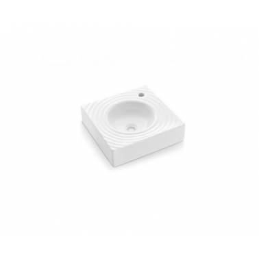 Lavabo sospeso da appoggio senza troppopieno. Dimensioni: 450x450x120 mm.