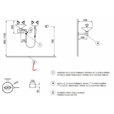 Lavaojos de Pared Doble con Ducha Manual y Recogedor de Polipropileno marca Bocchi