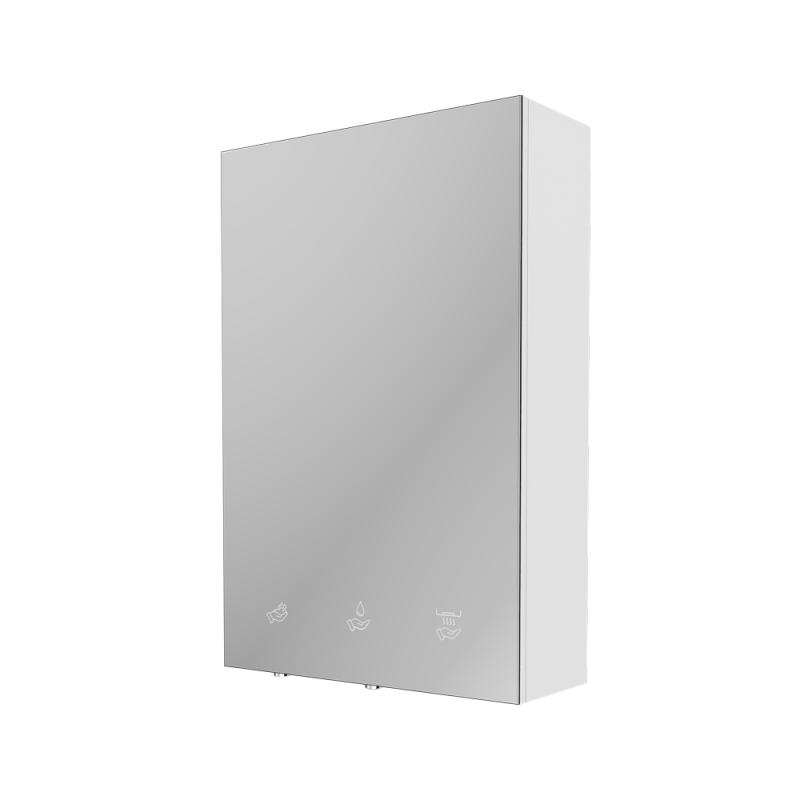Conjunto de grifo electrónico de un agua, cierre por presencia, jabonera electrónica y secamanos electrónico.