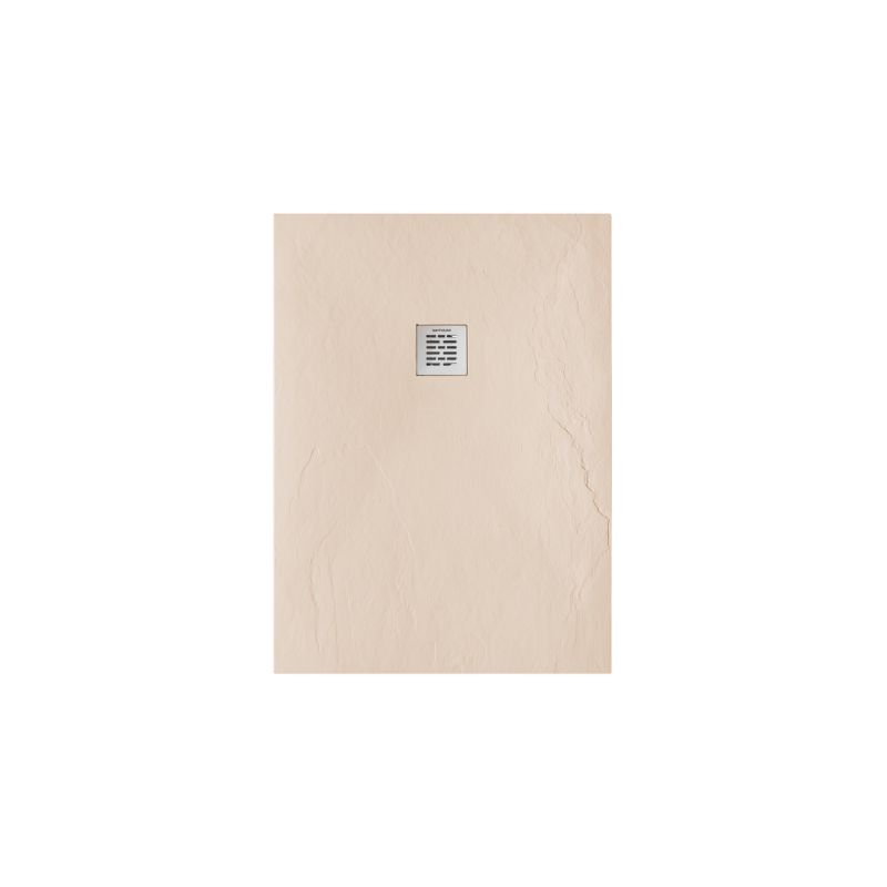 Plato de ducha de resina Marina con acabado en granito crema, medidas 120x70 cm. Resistente, de fácil limpieza y con un diseño elegante que complementa cualquier baño.