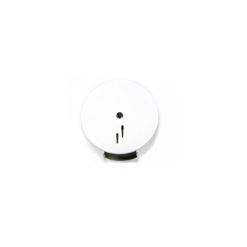 Dispensador de papel higiénico de acero inox acabado blanco para rollos industriales de hasta 25cm de diámetro
