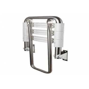 Sedile ribaltabile in acciaio inox AISI304 con finitura satinata, laccata lucida o bianca con sedile in Komercia ABS Komercia