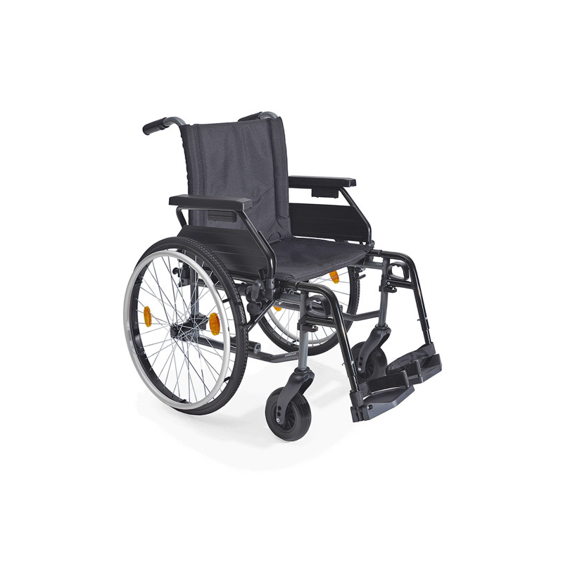 Silla de ruedas Gades Vario, talla 51 cm, marca Ayudas Dinámicas, diseñada para proporcionar una solución ergonómica, segura y versátil para usuarios de mayor complexión. Ancho del asiento: 51 cm, con ancho total de la silla: 71 cm. Equipada con ruedas traseras de 24" (600 mm), aro y llanta de aluminio, cubiertas de PU, y eje trasero de liberación rápida (Quick Release) para facilitar el desmontaje y transporte. Ruedas delanteras de 7” con cubiertas de PU. Chasis de acero con recubrimiento en polvo y tubo de 25 mm de diámetro. Soporta hasta 130 kg de peso. El asiento es regulable en altura (46 / 48 / 51 cm) y en profundidad (40 o 44 cm), permitiendo una correcta distribución del peso y postura personalizada. Reposabrazos de PU, suaves al tacto, regulables en altura (22 a 25 cm) y en longitud (modo escritorio/largo), además de ser abatibles y desmontables, lo que facilita las transferencias. Reposapiés con soportes de talón, desmontables y abatibles. Respaldo de 43 cm de altura. El sistema de anclaje posterior ofrece tres configuraciones posibles para adaptar la altura del asiento y el centro de gravedad, ideal para garantizar estabilidad y seguridad, especialmente útil en casos como usuarios amputados. El diseño ergonómico y ajustable permite el uso de distintos cojines posturales sin comprometer la postura o comodidad del usuario. Peso aproximado de la silla: 18 kg.
