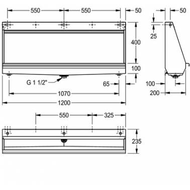 Orinatoio collettivo da parete realizzato in acciaio al cromo-nichel satinato da 1200mm marca Franke