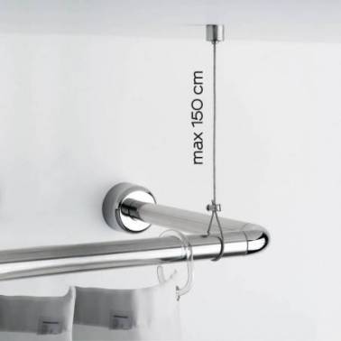 Suporte de teto cromado para varões de cortina com altura regulável até 150 cm, em latão e aço.
